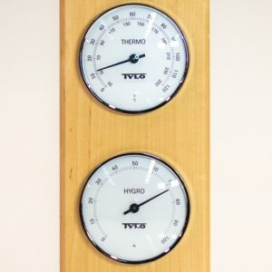 The Tylö Hygrometer measures the moisture and humidity in your sauna room. Beautifully encased in birch wood.