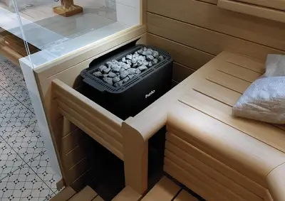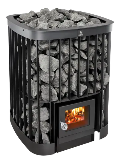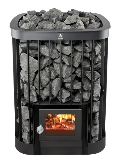 There is something special in the feel of a beautiful wood burning sauna heater.  The efficient combustion is facilitated by the use of heat retaining materials, also by the design of the sauna stone container and mainly by the double combustion technology.  The surface of the stones makes the heater a beautiful focus point in the room.
